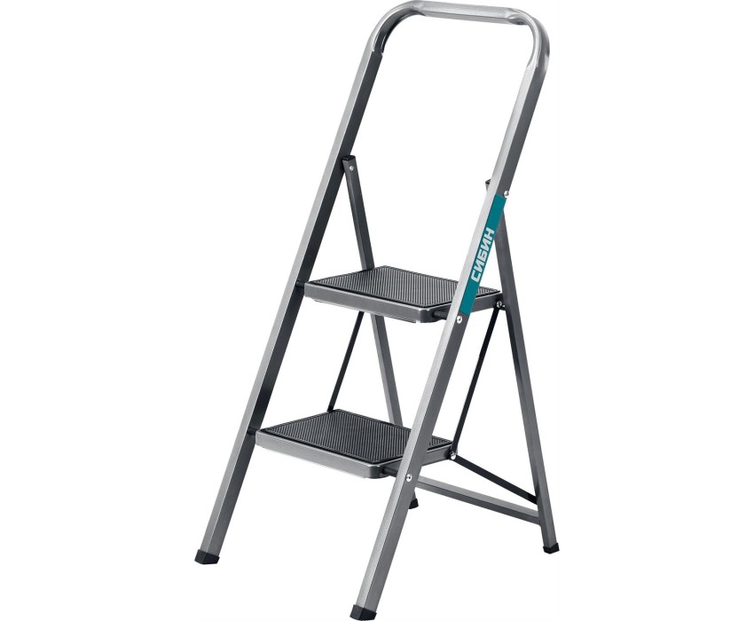 СИБИН 2 ступени, 46 см, c широкими обрезиненными ступенями, стальная стремянка (38807-02)