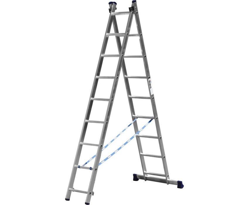 СИБИН 9 ступеней, со стабилизатором, алюминиевая, двухсекционная лестница (38823-09)
