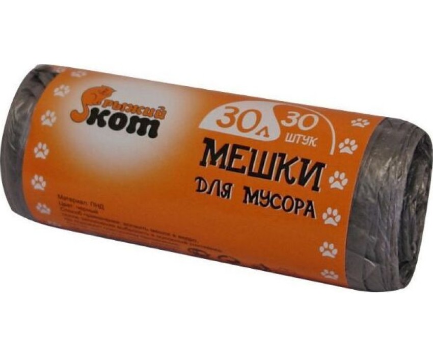 Мешки д/мусора РЫЖИЙ КОТ Мешки д/мусора "РЫЖИЙ КОТ" 30л (30шт./рул.), ПНД, черные, 5 мкм (310101)