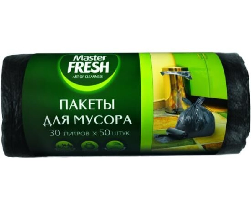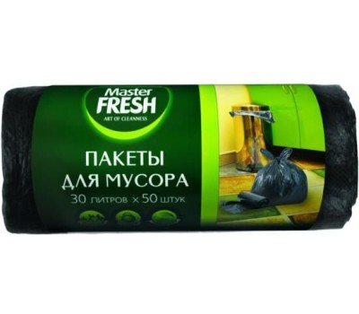 Мешки для мусора MASTER FRESH С0004377 Master FRESH MFGB30–50R пакеты для мусора 30 литров, 50 штук (ЧЕРНЫЕ) 7мкм