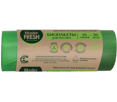 Мешки для мусора MASTER FRESH С0006471Master FRESH БИОпакеты для мусора 35л 30шт биоразлагаемые (салатовые) 7мкм