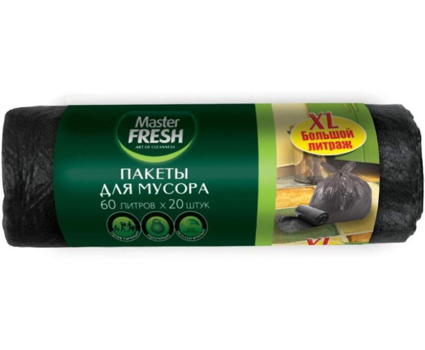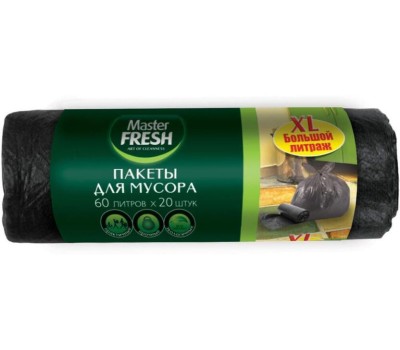 Мешки для мусора MASTER FRESH С0004294 Master FRESH MFGB60–20R пакеты для мусора 60 литров, 20 штук (ЧЕРНЫЕ) 9мкм