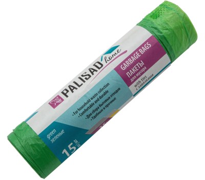 PALISAD HOME Пакеты для мусора с завязками 35 л x 15 шт., зеленые, Home Palisad 927175