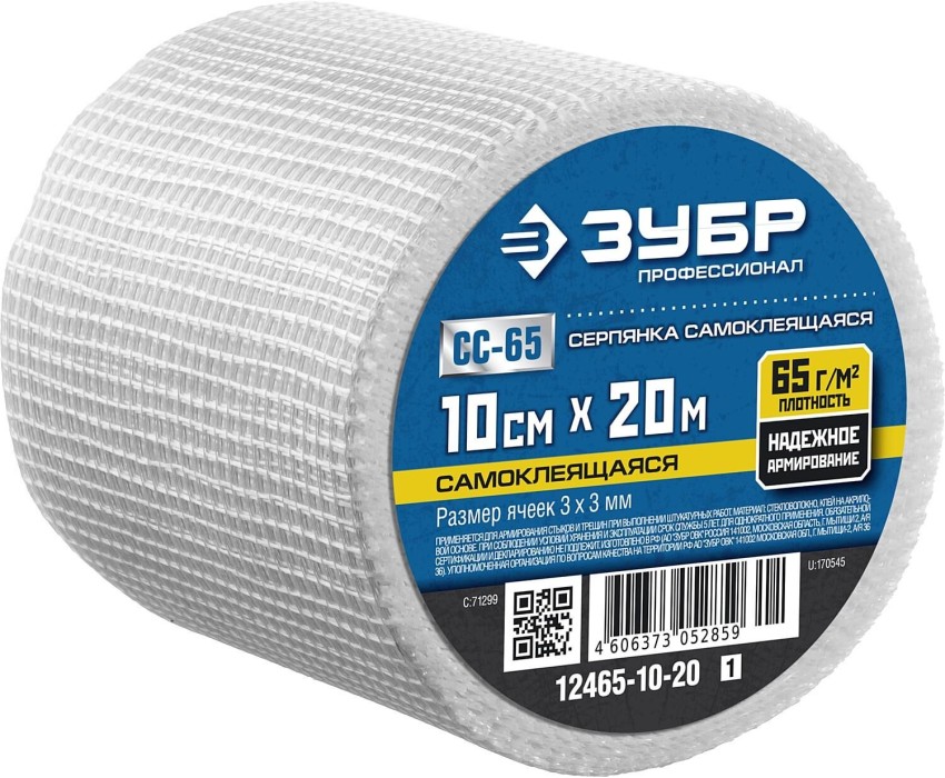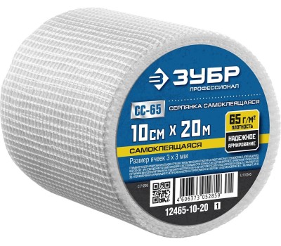 ЗУБР 10 см х 20 м, 3 х 3 мм, самоклеящаяся, стеклотканевая сетка, Профессионал (12465-10-20)
