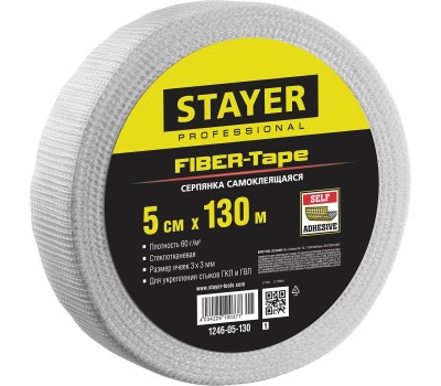 STAYER FIBER-Tape, 5 см х 130 м, 3 х 3 мм, самоклеящаяся серпянка, Professional (1246-05-130)