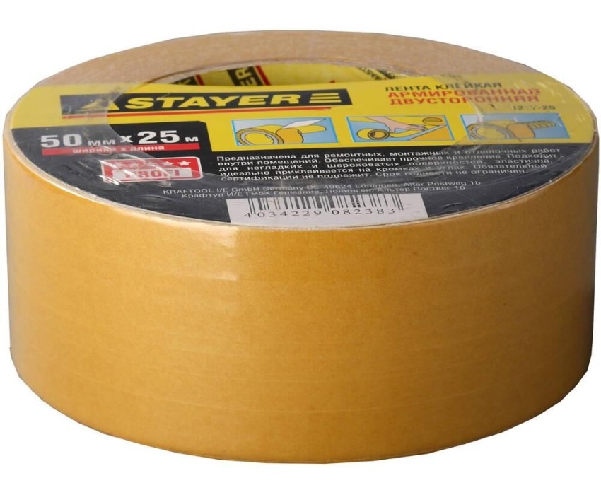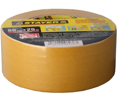 STAYER 50 мм, 25 м, на тканевой основе, двухсторонняя клейкая лента, Professional (1217-25)