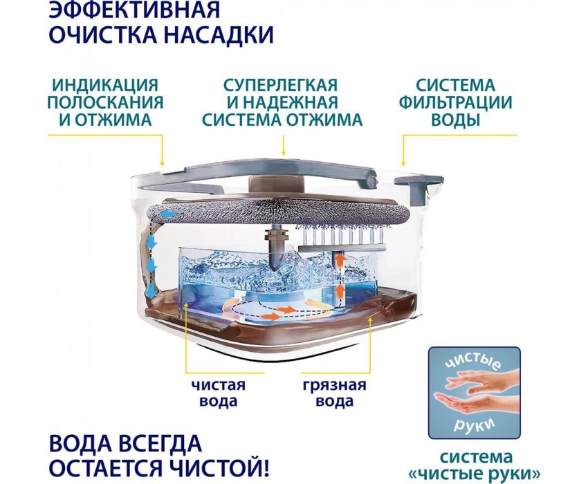 Компактный набор NIAGARA идеально подходит для влажной уборки небольших помещений. Ваши руки всегда остаются сухими и чистыми! Оснащен системой отжима насадки с уникальной функцией фильтрации воды - отделения/сепарации грязной воды, опцией индикации полоскания / отжима. Цвет: мятный Состав: пластик, металл, полиэстер Комплектация: швабра-1шт, насадка-1шт, ведро-1шт, система отжима-1шт Подходит для всех видов напольных покрытий, в том числе и деликатных полов Насадка изготовлена из высококачественной, высокопрочной микрофибры В отличии от натуральных волокон, микрофибра обладает повышенной впитывающей способностью и удерживает на своей поверхности любые загрязнения, в том числе маслянистые вещества Не оставляет разводов и подходит для деликатного пола Легко отжимается, не скатывается, быстро высыхает и не впитывает запахи Можно стирать в стиральной машинке при температуре 60 градусов Выдерживает до 600 циклов уборки