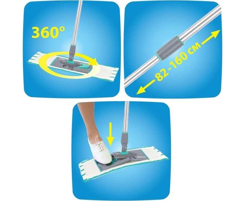 Цвет: мятный, белый Состав: алюминий, пластик, микрофибра Комплектация: швабра-1шт, насадка-1шт Минимальная длина черенка (см): 82 Максимальная длина черенка (см): 160 Размер платформы ДxШ (см): 52x12 Размеры в сложенном виде (см): 118x12x8 Швабра PROFESSIONAL HOME предназначена для влажной уборки пола и больших помещений. Ручка швабры включает противоскользящие, приятные на ощупь элементы из мягкого пластика. Швабра оснащена телескопическим механизмом, что позволяет выбрать комфортную длину для вашего роста – минимальная длина 82 см, максимальная длина 160 см. Черенок швабры изготовлен из легкого и долговечного алюминия, который выдерживает высокие эксплуатационные нагрузки, не ржавеет в процессе использования, а платформа из ударопрочного ABS пластика. Платформа швабры вращается на 360 градусов, а равномерный прижим платформы к полу позволяет делать уборку без разводов. Насадка швабры из микрофибры обладает хорошей способностью впитывать и удерживать воду, легко отжимается.