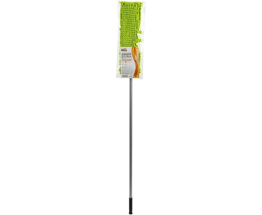 Материал: полипропилен, сталь, микрофибра 900 гр/м2 (полиэстер 100%). Размер платформы: 39*9 см Размер насадки: 41*12 см Длина рукоятки (черенка): 110 см. Диаметр рукоятки 19мм Рукоятка без телескопа. Цвет платформы: черный. Цвет насадки: зелёный Инд.упаковка: пакет + бумажная этикетка Микрофибра притягивает и удерживает частицы пыли за счет безупречных электростатических свойств материала. Может быть использована для сухой и влажной уборки для различных материалов поверхности. Сменная насадка: артикул 310311 Насадка для швабры из микрофибры MopM4-H «Лапша»