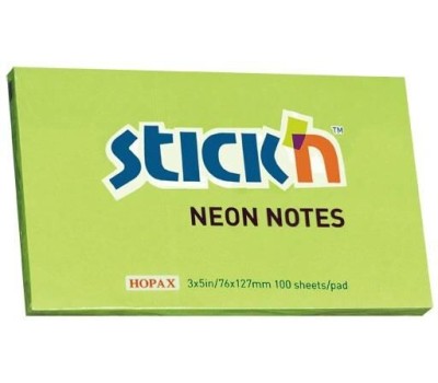 STICK`N Блок самоклеящийся бумажный 21171 76x127мм 100лист. 70г/м2 неон зеленый