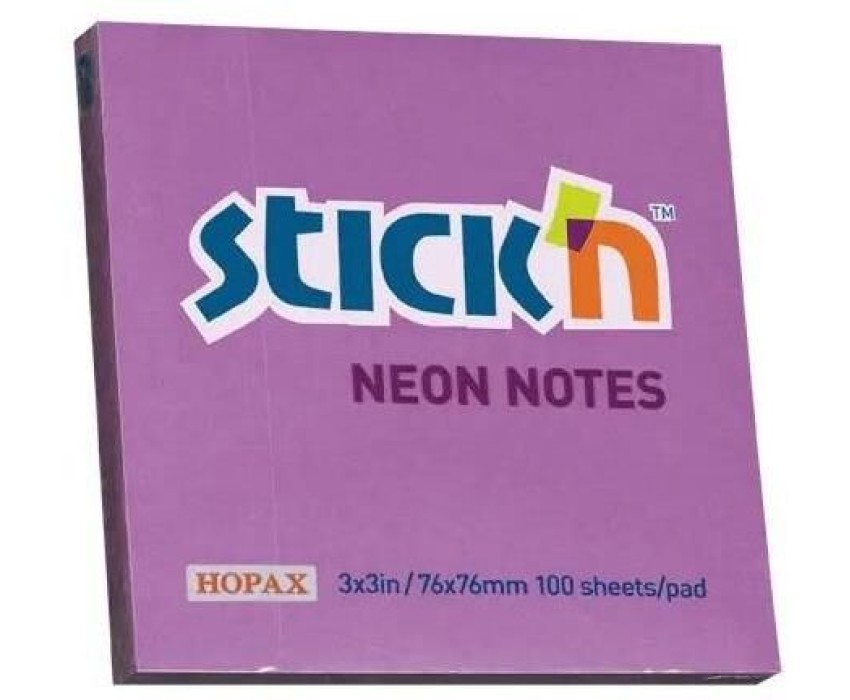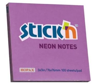 STICK`N Блок самоклеящийся бумажный 21210 76x76мм 100лист. 70г/м2 неон фиолетовый