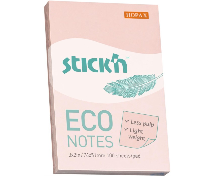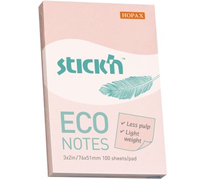 STICK`N Блок самоклеящийся бумажный ECO 21742 51x76мм 100лист. 60г/м2 пастель розовый