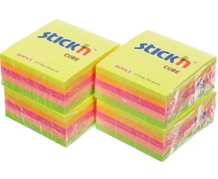 STICK`N Блок самоклеящийся бумажный 21203 51x51мм 250лист. 70г/м2 неон 5цв.в упак