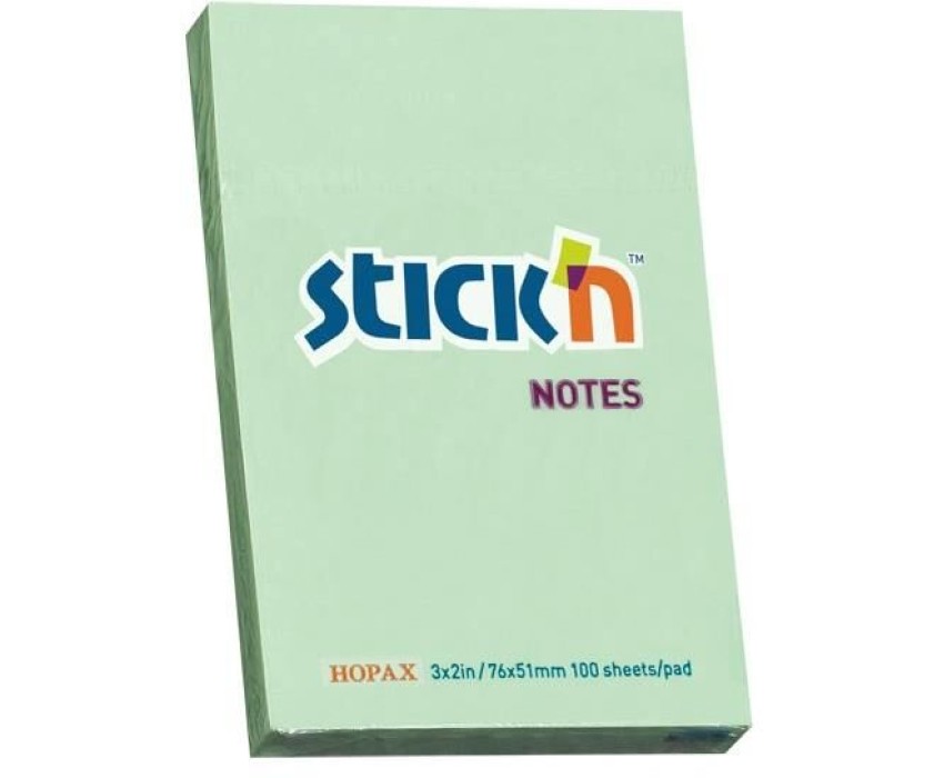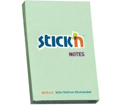 STICK`N Блок самоклеящийся бумажный 21147 51x76мм 100лист. 70г/м2 пастель зеленый