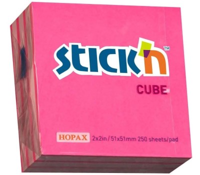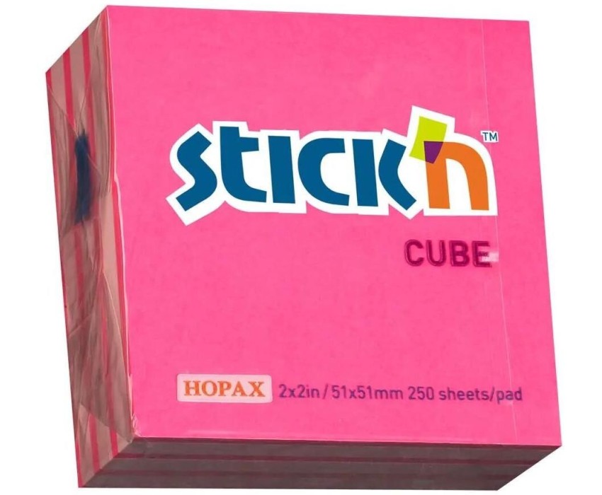 STICK`N Блок самоклеящийся бумажный 21338 51x51мм 250лист. 70г/м2 неон+пастель розовый 2цв.в упак
