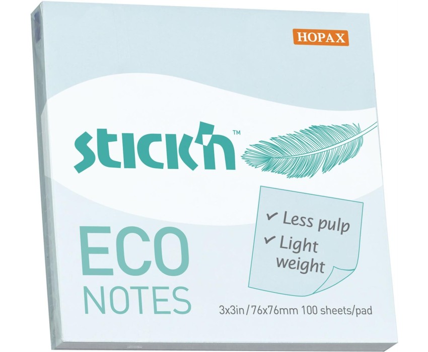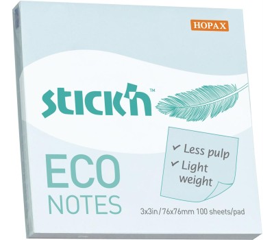 STICK`N Блок самоклеящийся бумажный ECO 21747 76x76мм 100лист. 60г/м2 пастель голубой