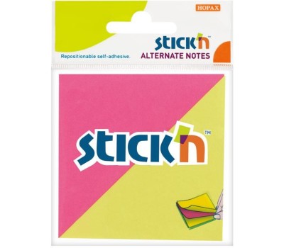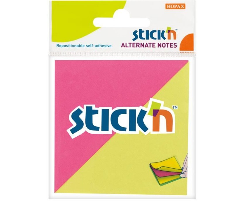 STICK`N Блок самоклеящийся бумажный 21299 76x76мм 100лист. 70г/м2 неон 2цв.в упак. европодвес