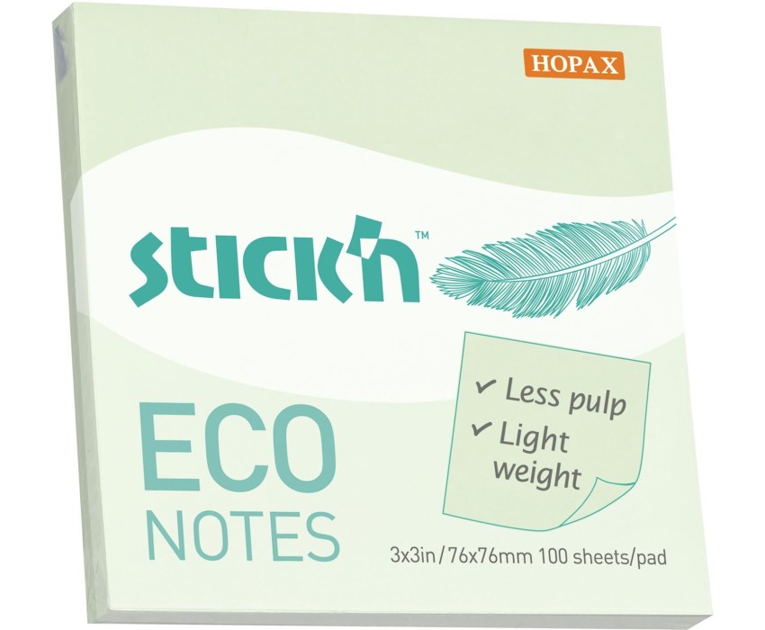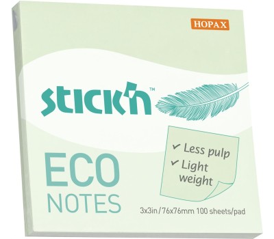 STICK`N Блок самоклеящийся бумажный ECO 21748 76x76мм 100лист. 60г/м2 пастель зеленый