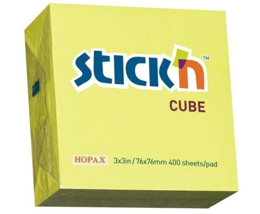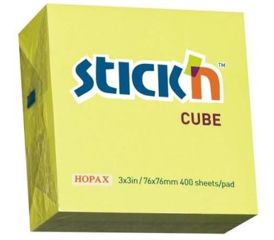 STICK`N Блок самоклеящийся бумажный 21010 76x76мм 400лист. 70г/м2 неон желтый