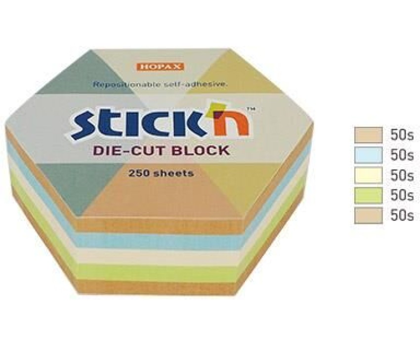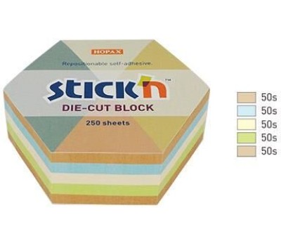 STICK`N Блок самоклеящийся бумажный 21828 61x70мм 250лист. пастель+крафт ассорти "гексагон"
