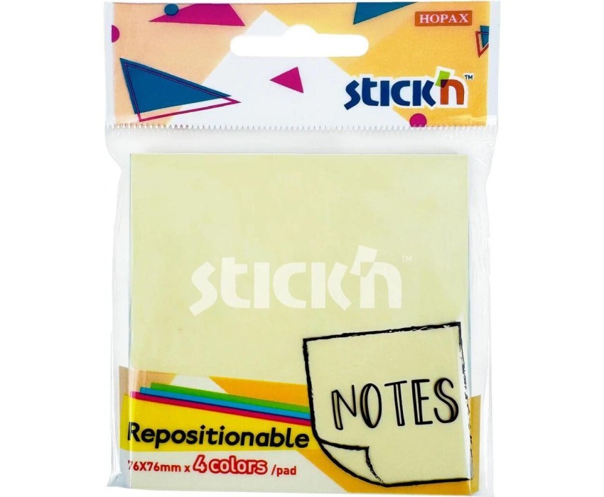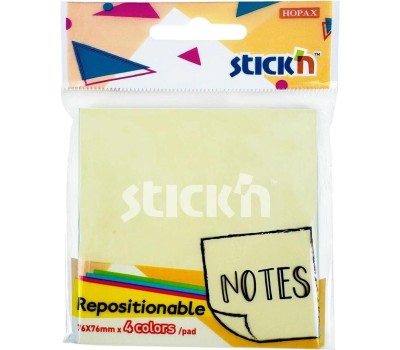STICK`N Блок самоклеящийся бумажный 27082 76x76мм 80лист. 70г/м2 пастель ассорти 4цв.в упак