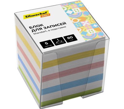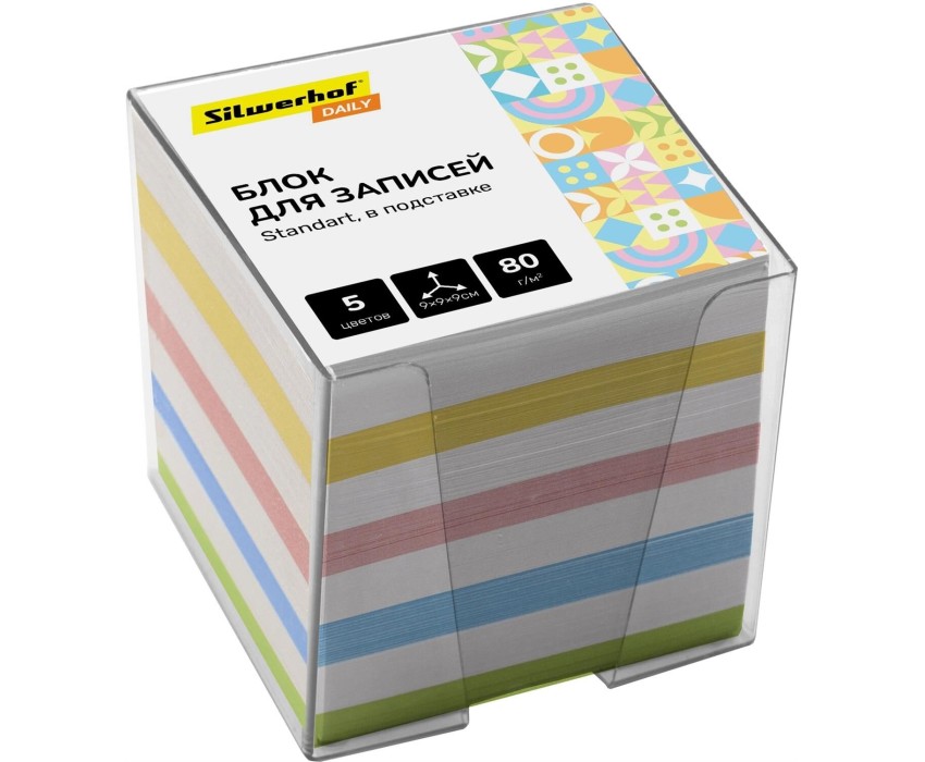 SILWERHOF Блок для записей бумажный Daily Стандарт 90x90x90мм 80г/м2 ассорти 5цв.в упак. в подставке