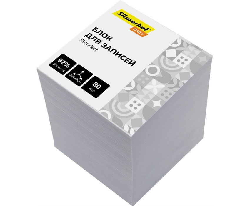 SILWERHOF Блок для записей бумажный Daily Стандарт 90x90x90мм 80г/м2 92% белый