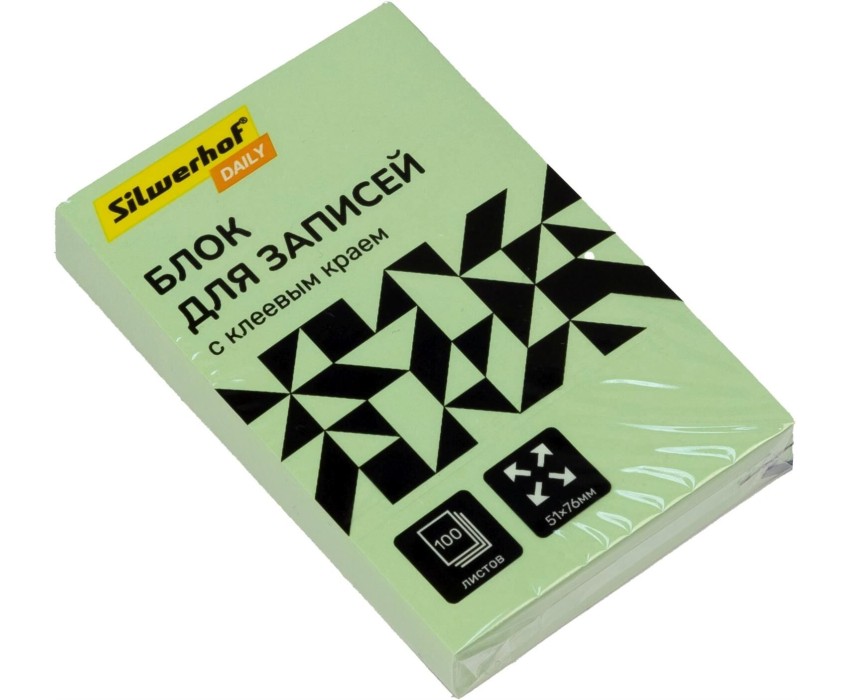 SILWERHOF Блок самоклеящийся бумажный Daily 51x76мм 100лист. 75г/м2 пастель зеленый