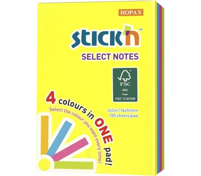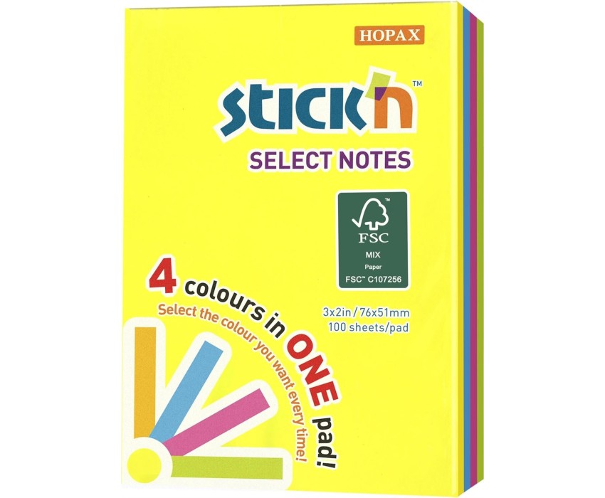 STICK`N Блок самоклеящийся бумажный Magic 21769 51x76мм 100лист. неон 4цв.в упак
