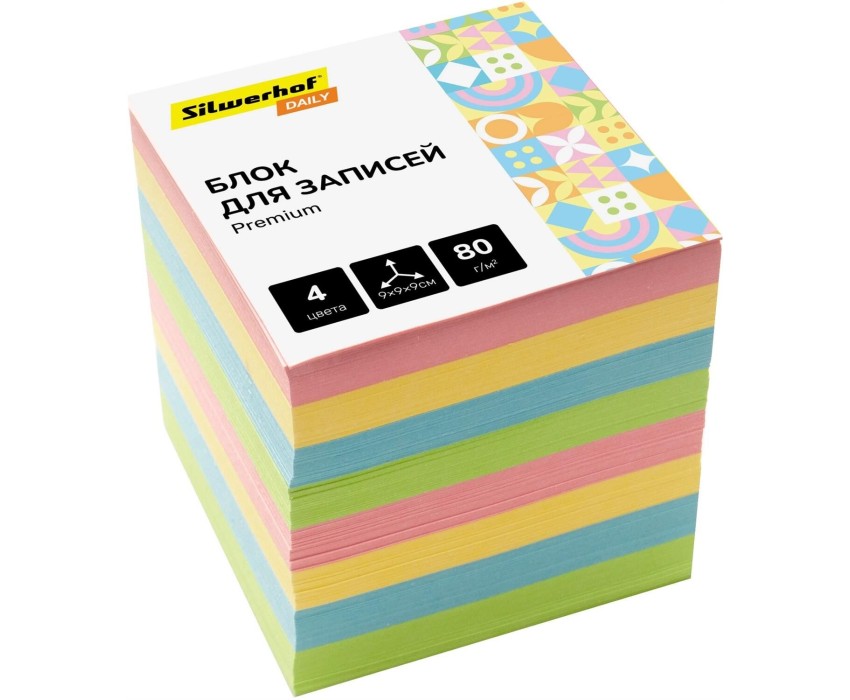 SILWERHOF Блок для записей бумажный Daily Премиум 90x90x90мм 80г/м2 4цв.в упак