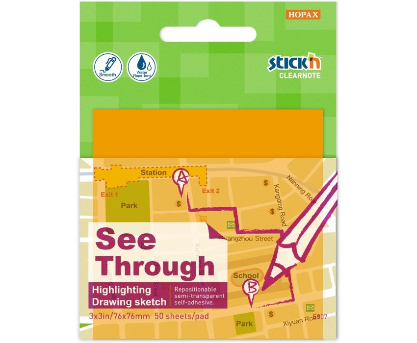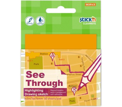 STICK`N Блок самоклеящийся пластиковый Clearnote 21710 76x76мм 50лист. неон оранжевый прозрачный
