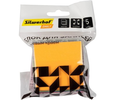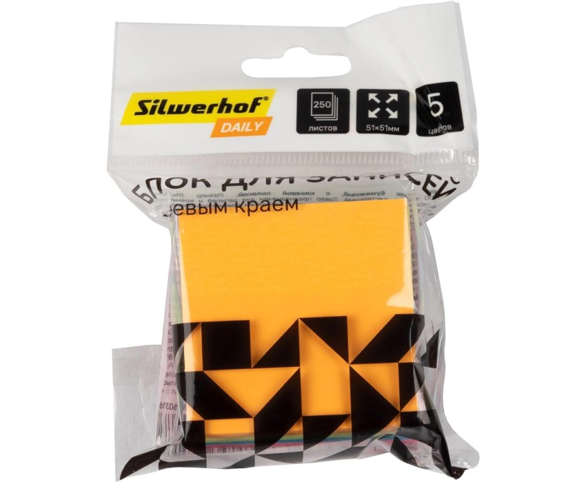 SILWERHOF Блок самоклеящийся бумажный Daily 51x51мм 250лист. 75г/м2 неон 5цв.в упак. европодвес