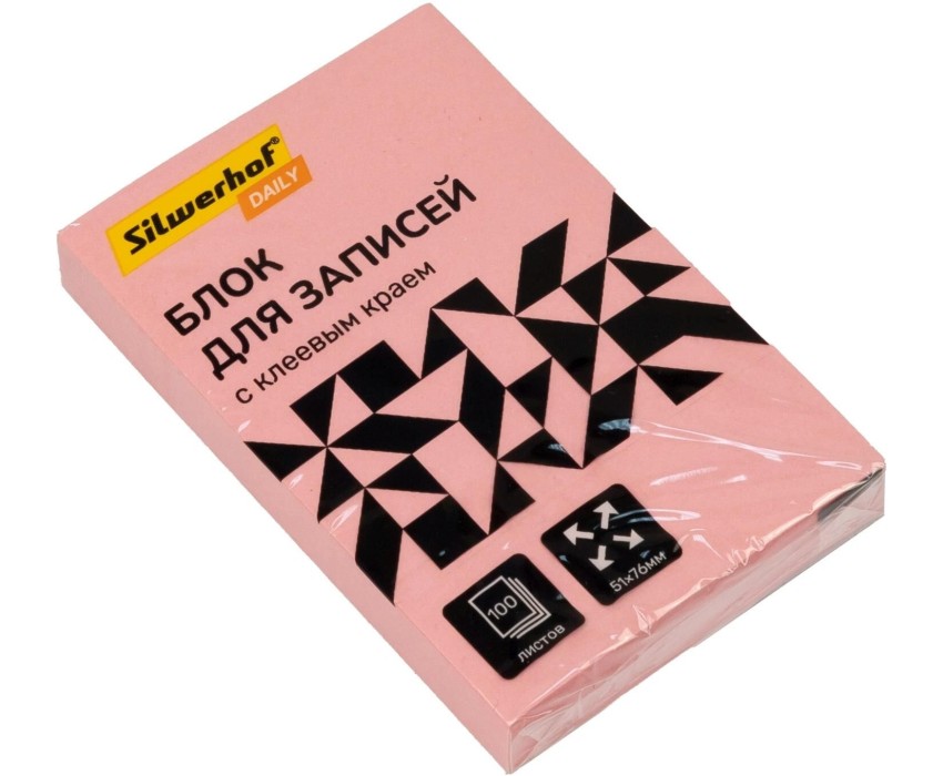SILWERHOF Блок самоклеящийся бумажный Daily 51x76мм 100лист. 75г/м2 пастель розовый