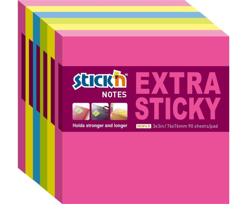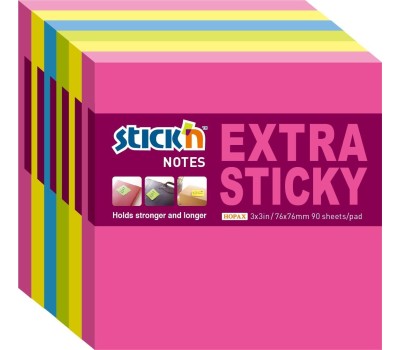 STICK`N Блок самоклеящийся бумажный Extra Sticky 21679 76x76мм 90лист. 70г/м2 неон ассорти (упак.:6шт)