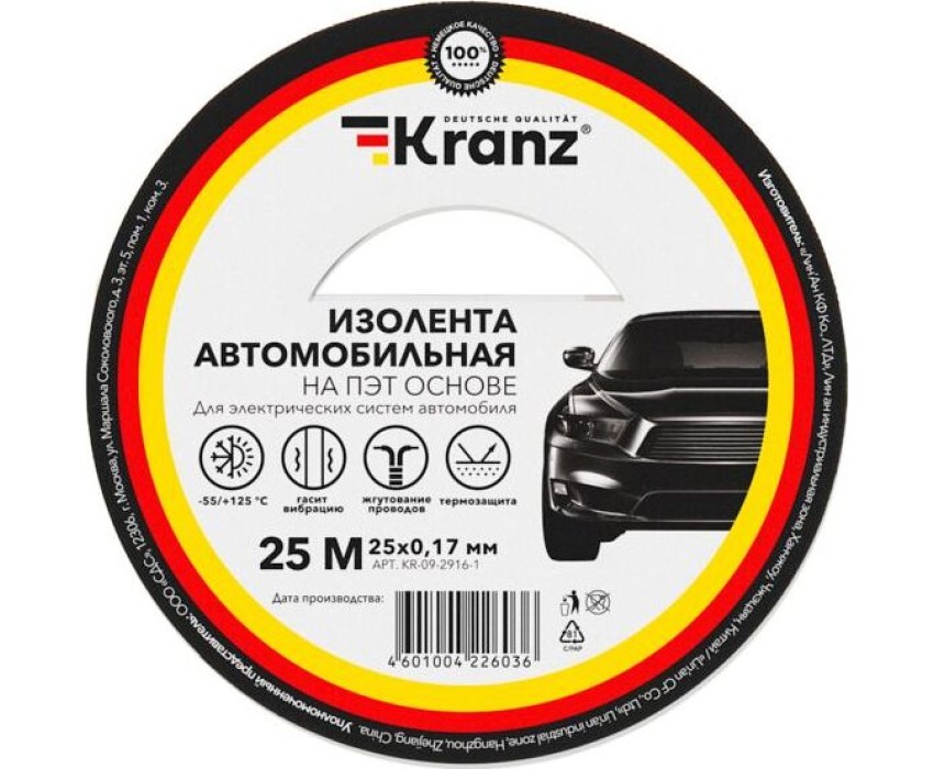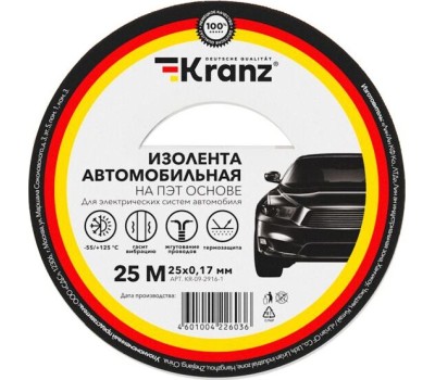 KRANZ Изолента автомобильная полиэстер, 0.17х25 мм, 25 м