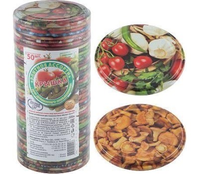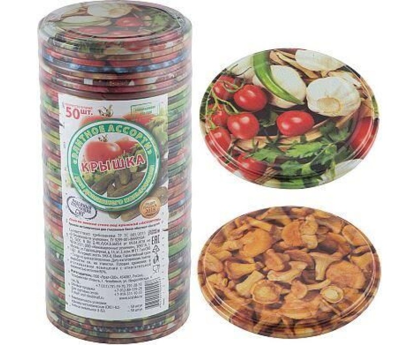 Материал: жесть ЭЖК с классом покрытия олово Толщина жести: 0,18 мм Диаметр крышки: 82 мм В наборе: 50 шт. Покрытие крышек: литография (рисунок + лак) Индивидуальная упаковка: термоусадочная пленка Для стеклянных банок с венчиком горловины типа I-82 (СКО) Крышка СКО1-82, литографированная (каждая крышка в столбике с литографическим изображением овощей, фруктов, ягод, грибов), изготовлена из белой жести и покрыта пищевым лаком. По внутреннему ободку крышки проходит резиновое пищевое уплотнительное кольцо для герметичного закрывания банки.