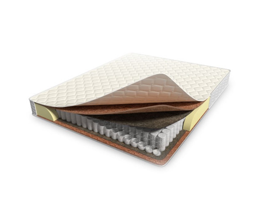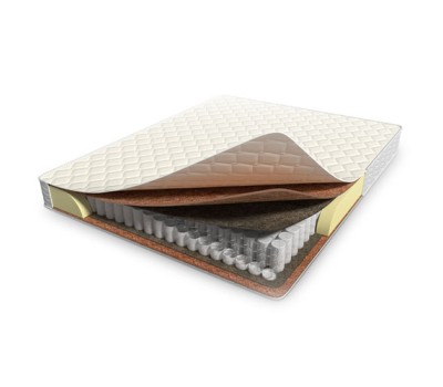Серия CHOCO. Высота: 190мм; жесткость: средняя; верхняя ткань: трикотаж. Состав: Кокос 10мм, термовойлок, TFK блок, термовойлок, кокос 10мм. Ортопена по периметру. Нагрузка до 110 кг.