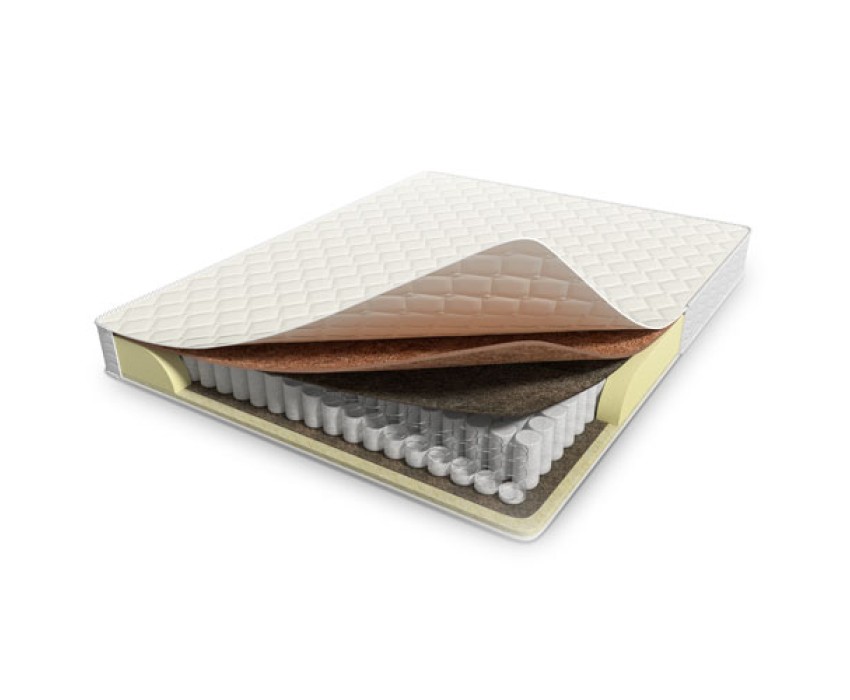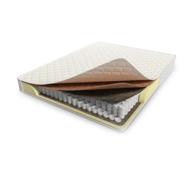 Серия CHOCO. Высота: 200мм; жесткость: средняя/низкая; верхняя ткань: жаккард. Состав: Кокос 10мм, термовойлок, TFK блок, термовойлок, ортопена 20мм.Ортопена по периметру. Нагрузка до 120 кг.