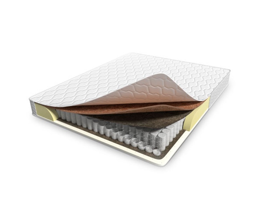 Серия OLIMPUS. Высота: 190мм; жесткость: средняя/низкая; верхняя ткань: трикотаж. Состав: Кокос 10мм, термовойлок, TFK блок, термовойлок, латекс 10мм. Ортопена по периметру . Нагрузка до 110 кг.