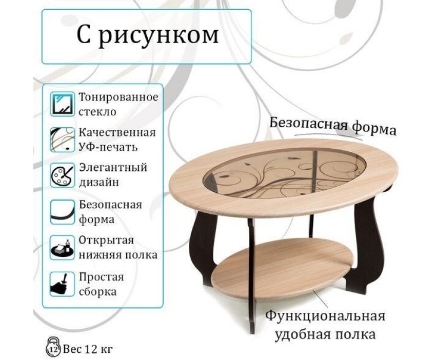 Журнальный стол СЖ-25 со стеклом смотрится элегантно, благодаря извилистым ножкам. У столика есть нижняя столешница, которую можно использовать для хранения журналов. Журнальные столы серии СЖ-25 со стеклом – удачные примеры мебели по приемлемой цене. Купить его недорого напрямую от производителя можно в Интернет-магазине АВЕНТА/мебель. В нашем каталоге Вы найдете примеры столов различных форм, цветов и размеров. Модель СЖ-25 сделана из МДФ и имеет сглаженные формы. Это придает Вашему интерьеру элегантность. Лаконичный дизайн и практичная компоновка. Столешница со стеклом, на которое может быть нанесена фотопечать, и полка для книг или журналов делают данный товар неповторимым. Габариты: ВхГхШ (520х680х900)мм. Материал каркаса: ЛДСП. Поверхность: МДФ/стекло. Форма стола: овальный. Раскладной: нет. Суммарный объем упаковки: 0,038 м3.