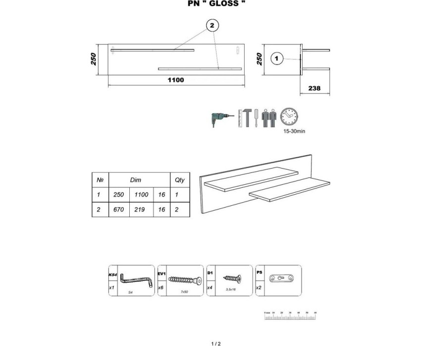 Настенная полка GLOSS гармонично дополнит интерьер гостиной и сделает его более завершенным. Дизайн с двумя планками позволит создать интересную интерьерную композицию. На полке будут удачно смотреться небольшие сувениры, фотографии или другие предметы декора. Изготовлено из ЛДСП 16 мм.. Размеры изделия (ШВГ): 110 х 25 х 23,5 см.