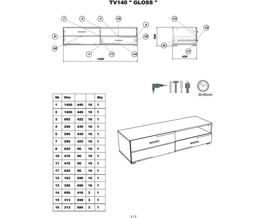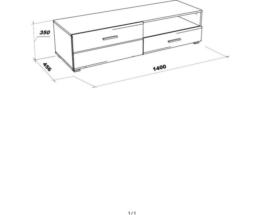 GLOSS тумба для ТВ-140 состоит из открытой ниши, выдвижного ящика, а также нишей за дверцей, которая снабжена газлифтом и петлями. Корпус изготовлен из ЛДСП 16 мм., фасад из МДФ 16 мм. Бесшумно: петли с доводчиками. Удобно: ящики на шариковых направляющих полного выдвижения. Красиво: гланцевые фасады МДФ. Эргономично: монтаж задней стенки в паз (максимальное прилегание к стене). Размеры изделия: 140 х 35х 45,6 см.