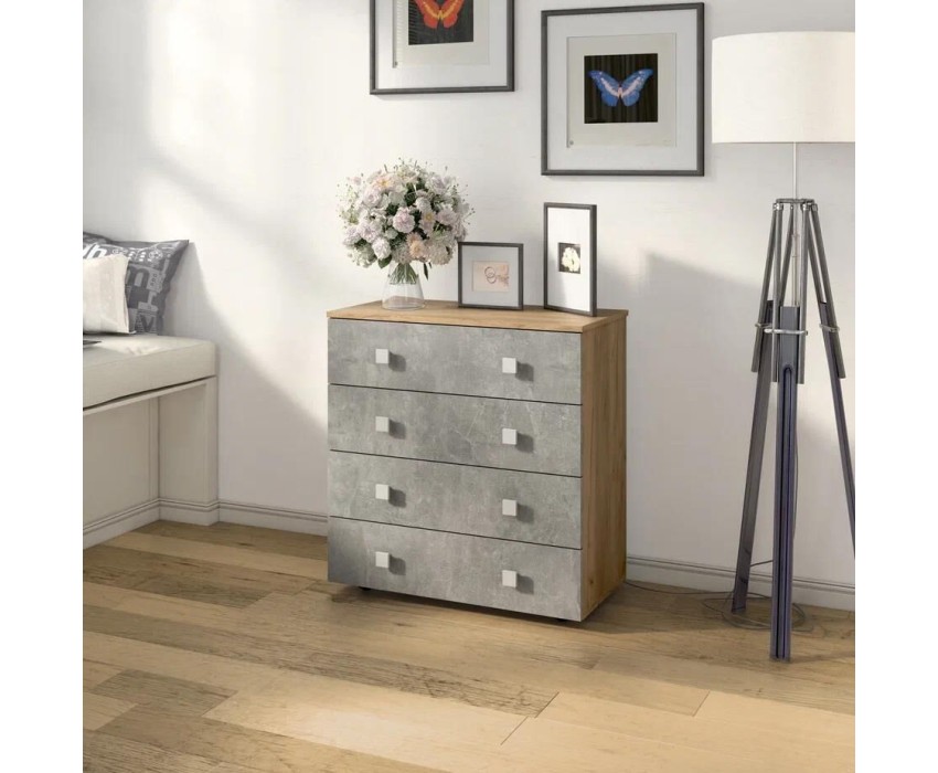 Комод БИТЕЛ ЛОФТ-4 Дуб крафт золотой/Бетон