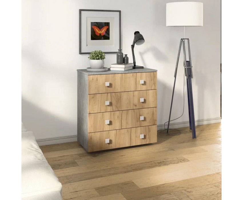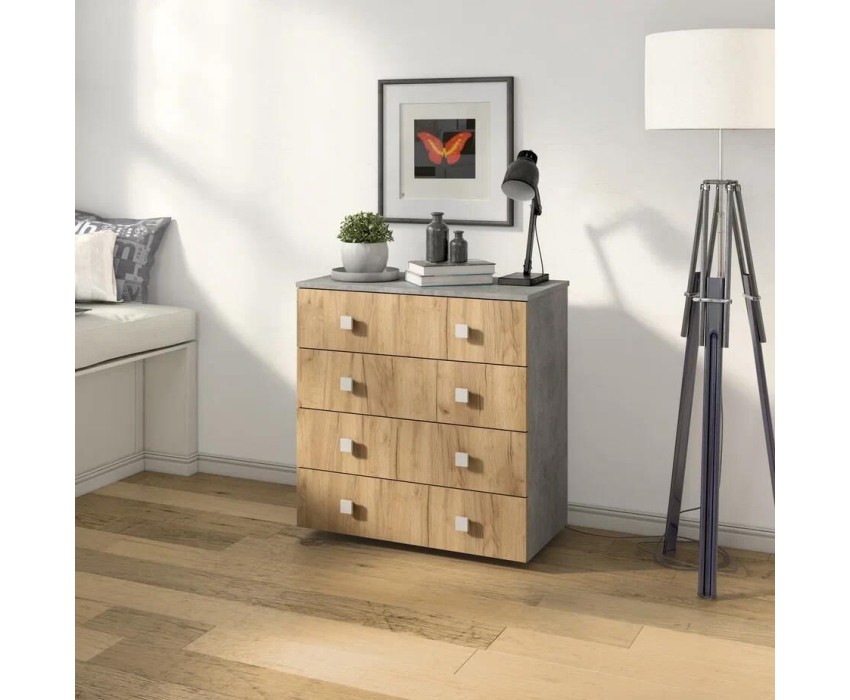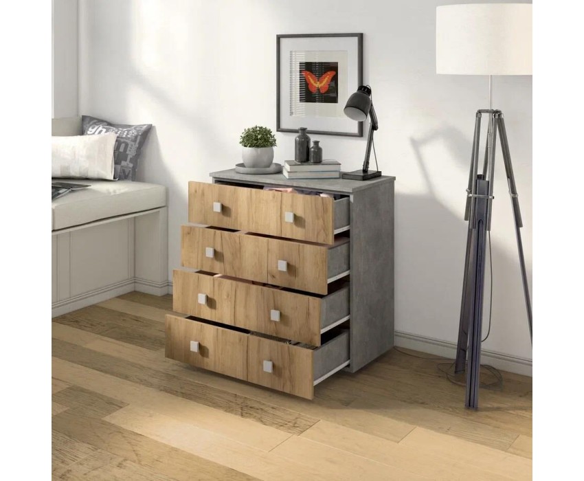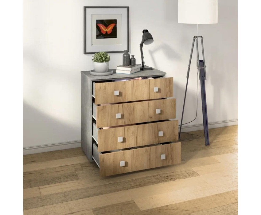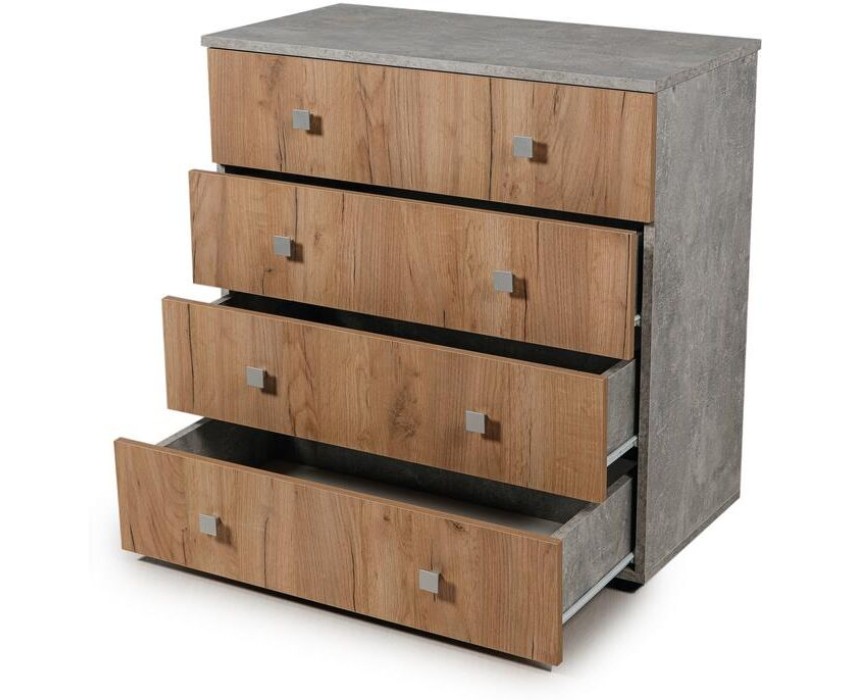 Комод БИТЕЛ ЛОФТ-4 Бетон/Дуб крафт золотой