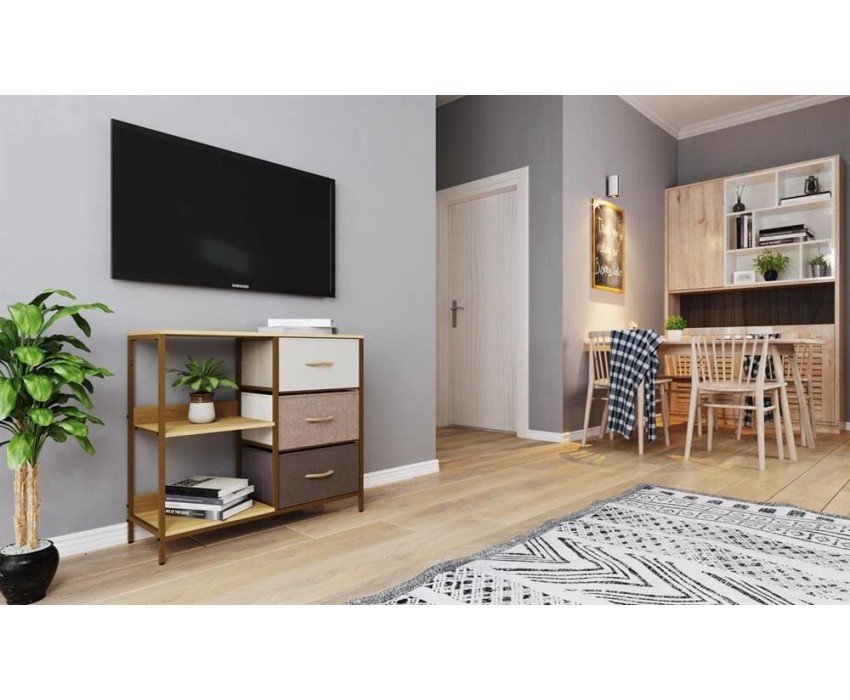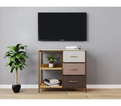 Комод LESET Локи Комод 3 ящ. С полками Бежевый/Светло-коричневый/Темно-коричневый