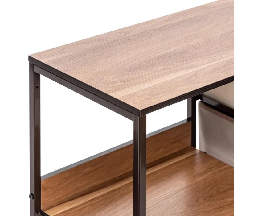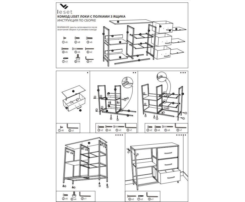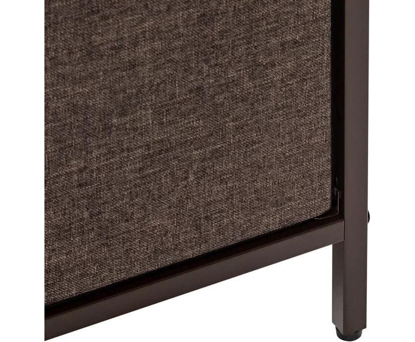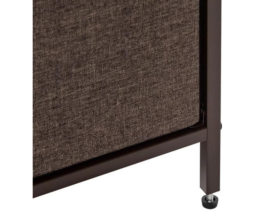 Комод представляет собой легкую конструкцию с металл каркасом на пластиковых ножках, с тремя выдвижными ящиками из нетканого материала (лён). Над ящиками располагается полка из МДФ. Металлическая рама с нескользящими ножками долговечна, обеспечивает хорошую посадку и не вредит полу; Простой уход протирайте влажной тканью; Можно крепить к стене и регулировать по высоте; Быстрая сборка 10 минут. Рекомендуется прикручивать комод к стене с помощью шурупов (в комплекте), согласно инструкции. Это исключит возможность опрокидывания комода (особенно важно для детских комнат и помещений с маленькими детьми). Габариты ШхГхВ, мм, 800х290х710. Полка верхняя (ШxГxВ), мм: 802х292х12. Полка средняя и нижняя (ШxГxВ), мм: 377,5х290х12, 2 шт. Задние стенки: 377,5х60х15, 2 шт. Ящики (ШxГxВ), мм: 460х280х215, 2 шт. Регулируемые по высоте ножки. Водоотталкивающие материалы ящиков. Расстояние между полками: 310 мм верх, 293 мм низ. Высота от пола до нижней перекладины полки - 70 мм.
