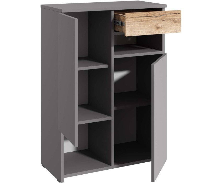 Модульная мебель МЕБЕЛЬ-КОМПЛЕКС ЙОРК Комод 2х дверный с ящиком Серый шифер/Дуб Делано