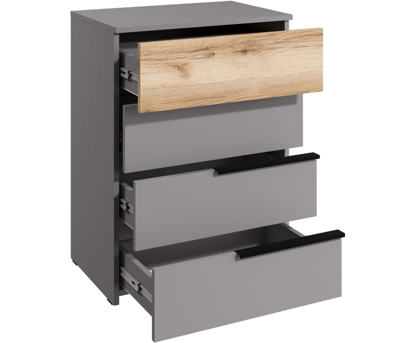 Модульная мебель МЕБЕЛЬ-КОМПЛЕКС ЙОРК Комод 4Я Серый шифер/Дуб Делано