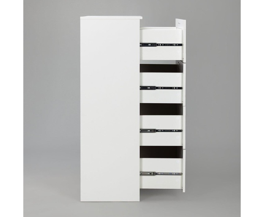 Комод СИРИУС с четырьмя наружными выдвижными ящиками, 782х412х1234, цвет Белый. Изготовлен из кашированного ДСП толщиной 16 мм. Крепится к стене. Гарантийный срок для жилых помещений 24 месяца, для общественных помещений - 18 месяцев.