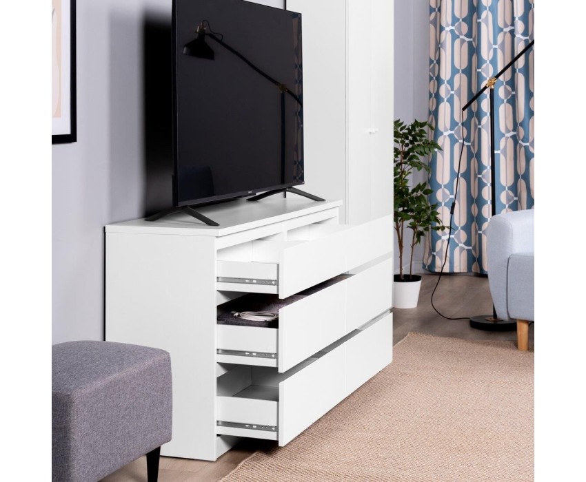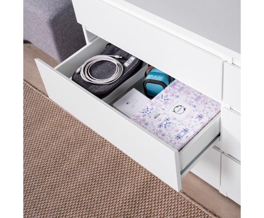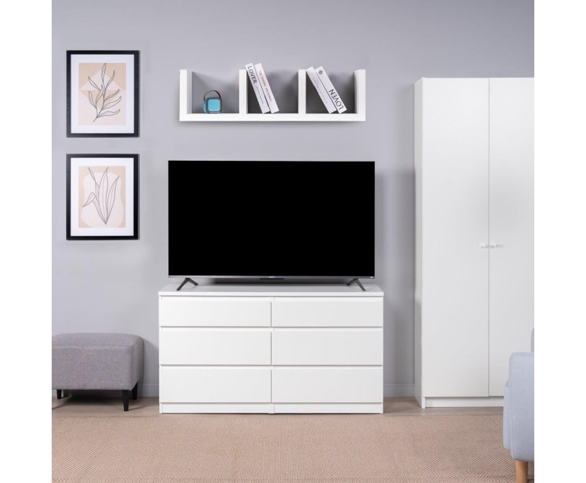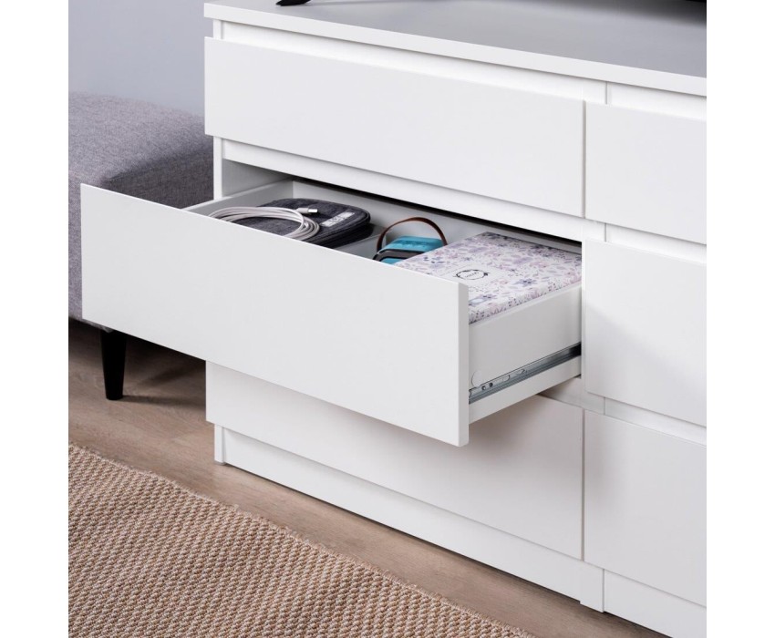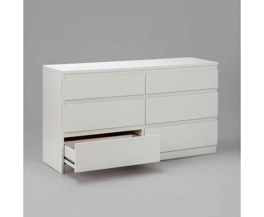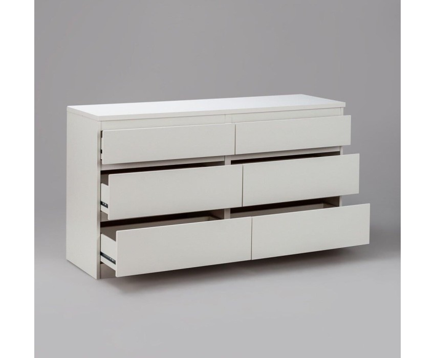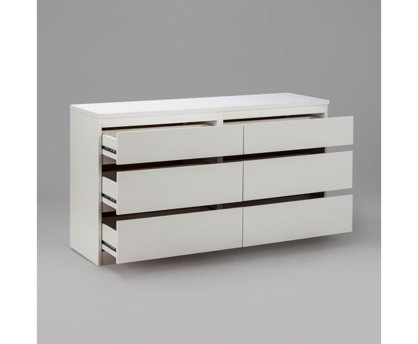 Комод КАСТОР с шестью наружными выдвижными ящиками, 1297х396х716, цвет Белый. Изготовлен из кашированного ДСП толщиной 16 мм. Крепится к стене. Гарантийный срок для жилых помещений 24 месяца, для общественных помещений - 18 месяцев.